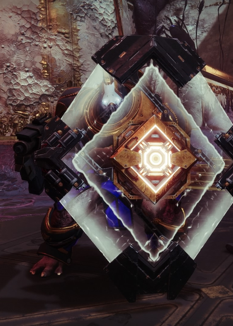 This image is a screenshot of a character or AI unit from the Destiny series of first-person shooter video games developed by Bungie Studios and published by Bungie or Activision. It falls under the screenshot category for a copyrighted computer game or video game, and the copyright for it is most likely held by the company that developed the game. It is believed that the use of a limited number of web-resolution screenshots: