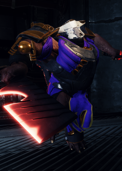 This image is a screenshot of a character or AI unit from the Destiny series of first-person shooter video games developed by Bungie Studios and published by Bungie or Activision. It falls under the screenshot category for a copyrighted computer game or video game, and the copyright for it is most likely held by the company that developed the game. It is believed that the use of a limited number of web-resolution screenshots: