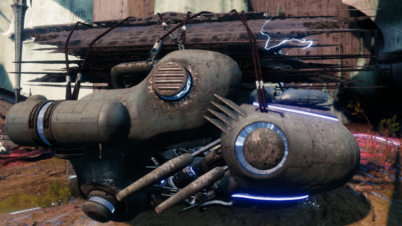 This image is a screenshot of a vehicle from the Destiny series of first-person shooter video games developed by Bungie Studios and published by Bungie or Activision. It falls under the screenshot category for a copyrighted computer game or video game, and the copyright for it is most likely held by the company that developed the game. It is believed that the use of a limited number of web-resolution screenshots:
