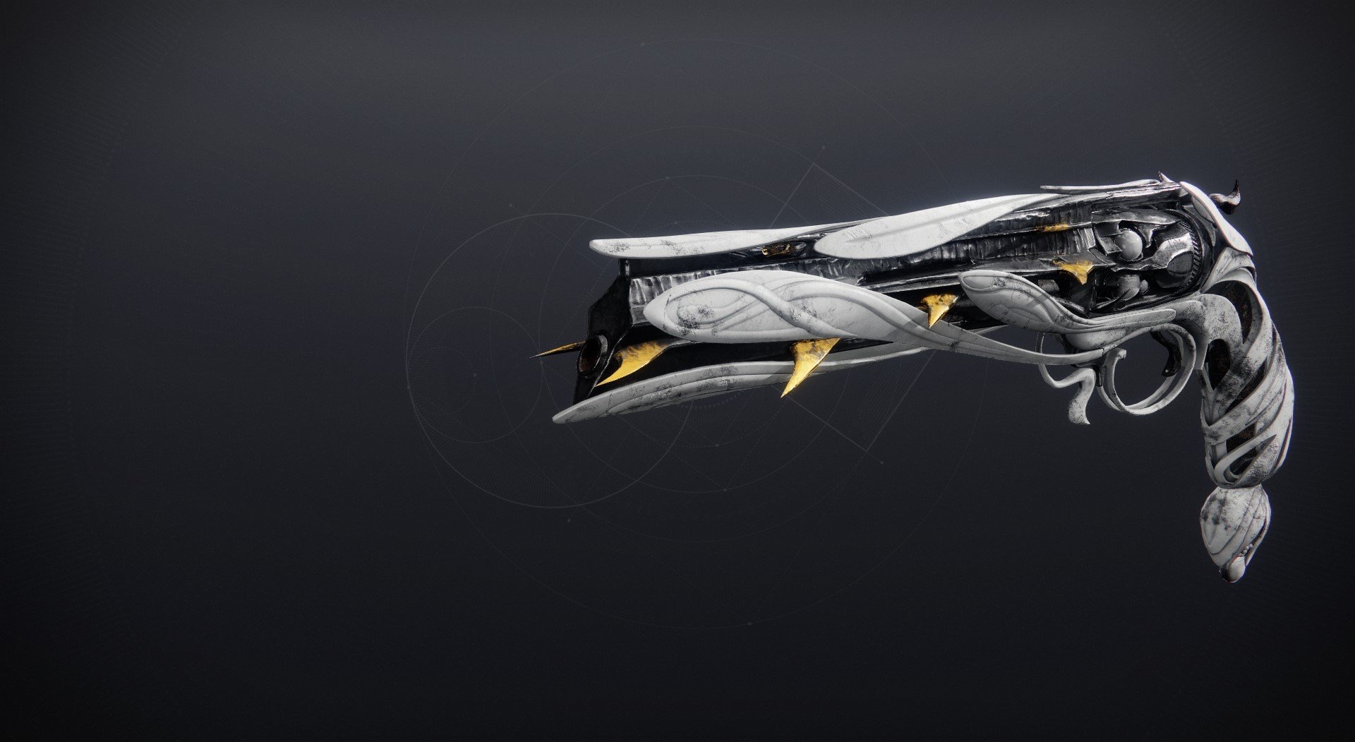 This image is a screenshot of a weapon from the Destiny series of first-person shooter video games developed by Bungie Studios and published by Bungie or Activision. It falls under the screenshot category for a copyrighted computer game or video game, and the copyright for it is most likely held by the company that developed the game. It is believed that the use of a limited number of web-resolution screenshots: