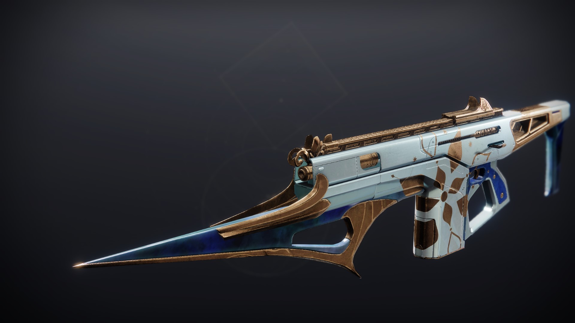 This image is a screenshot of a weapon from the Destiny series of first-person shooter video games developed by Bungie Studios and published by Bungie or Activision. It falls under the screenshot category for a copyrighted computer game or video game, and the copyright for it is most likely held by the company that developed the game. It is believed that the use of a limited number of web-resolution screenshots: