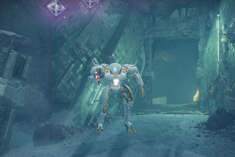 This image is a screenshot of a character or AI unit from the Destiny series of first-person shooter video games developed by Bungie Studios and published by Bungie or Activision. It falls under the screenshot category for a copyrighted computer game or video game, and the copyright for it is most likely held by the company that developed the game. It is believed that the use of a limited number of web-resolution screenshots: