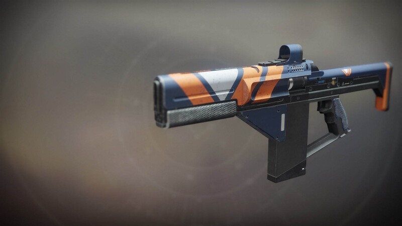 This image is a screenshot of a weapon from the Destiny series of first-person shooter video games developed by Bungie Studios and published by Bungie or Activision. It falls under the screenshot category for a copyrighted computer game or video game, and the copyright for it is most likely held by the company that developed the game. It is believed that the use of a limited number of web-resolution screenshots: