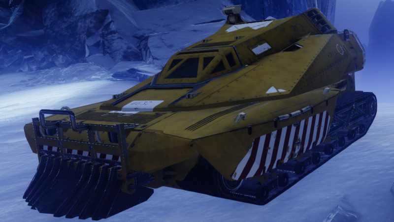 This image is a screenshot of a vehicle from the Destiny series of first-person shooter video games developed by Bungie Studios and published by Bungie or Activision. It falls under the screenshot category for a copyrighted computer game or video game, and the copyright for it is most likely held by the company that developed the game. It is believed that the use of a limited number of web-resolution screenshots: