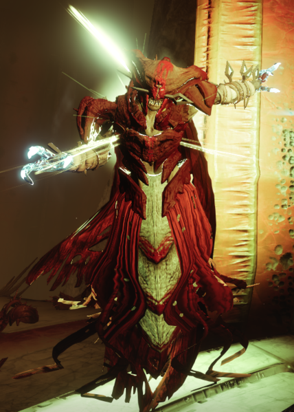 This image is a screenshot of a character or AI unit from the Destiny series of first-person shooter video games developed by Bungie Studios and published by Bungie or Activision. It falls under the screenshot category for a copyrighted computer game or video game, and the copyright for it is most likely held by the company that developed the game. It is believed that the use of a limited number of web-resolution screenshots: