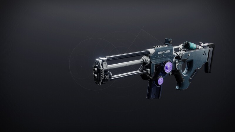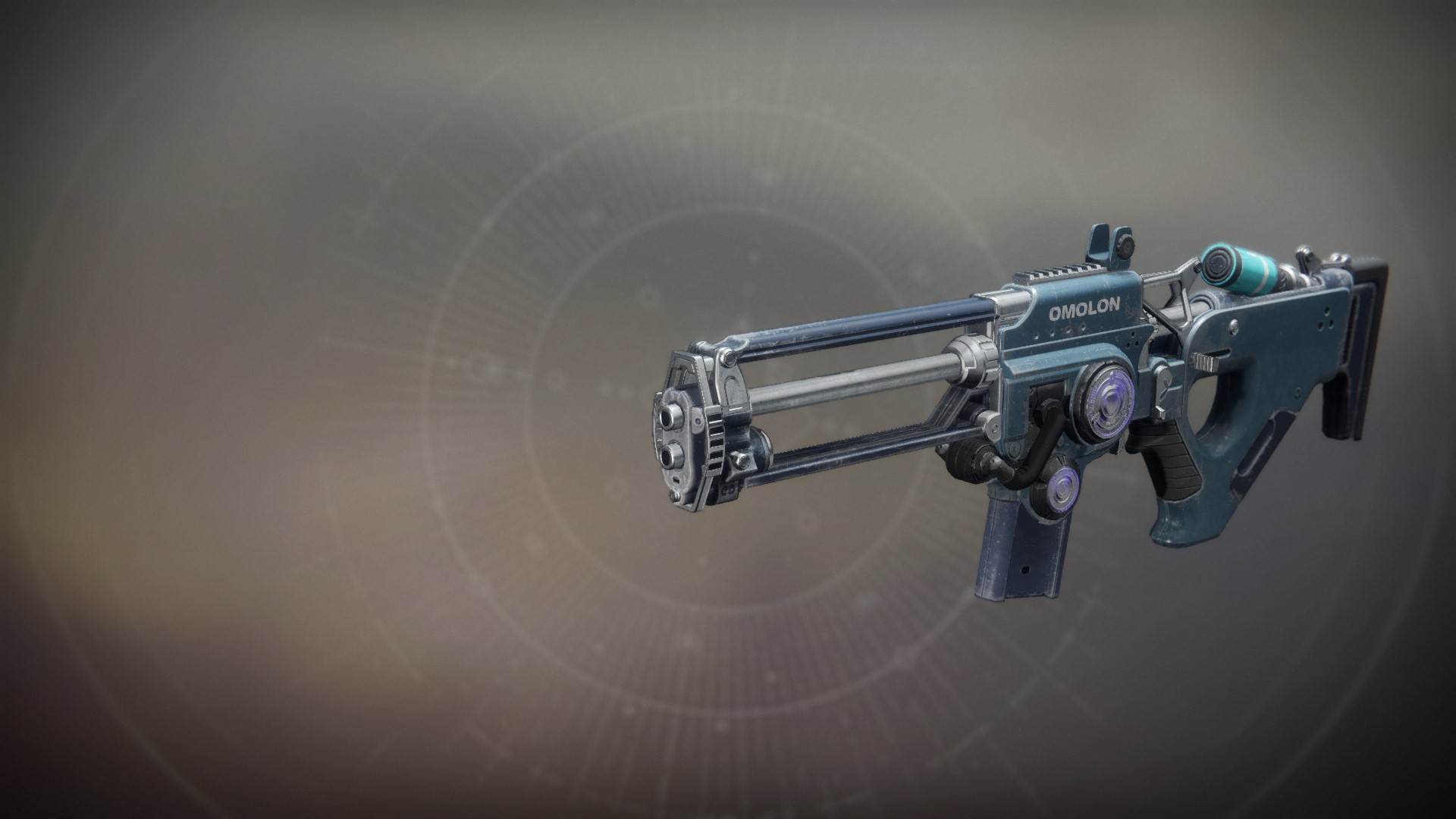 This image is a screenshot of a weapon from the Destiny series of first-person shooter video games developed by Bungie Studios and published by Bungie or Activision. It falls under the screenshot category for a copyrighted computer game or video game, and the copyright for it is most likely held by the company that developed the game. It is believed that the use of a limited number of web-resolution screenshots: