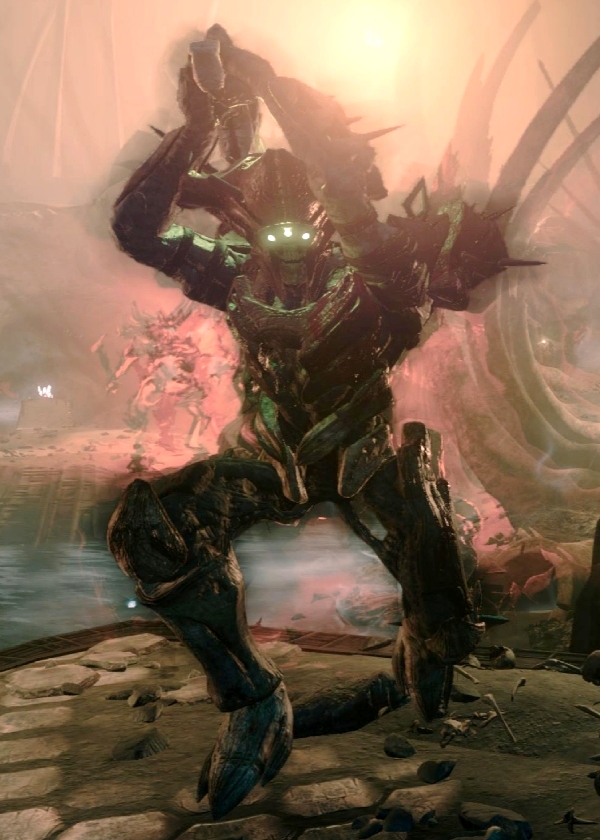 This image is a screenshot of a character or AI unit from the Destiny series of first-person shooter video games developed by Bungie Studios and published by Bungie or Activision. It falls under the screenshot category for a copyrighted computer game or video game, and the copyright for it is most likely held by the company that developed the game. It is believed that the use of a limited number of web-resolution screenshots: