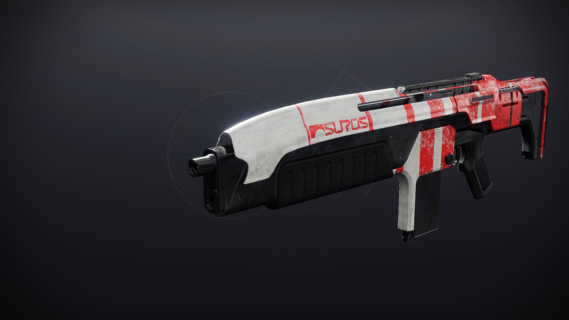 This image is a screenshot of a weapon from the Destiny series of first-person shooter video games developed by Bungie Studios and published by Bungie or Activision. It falls under the screenshot category for a copyrighted computer game or video game, and the copyright for it is most likely held by the company that developed the game. It is believed that the use of a limited number of web-resolution screenshots: