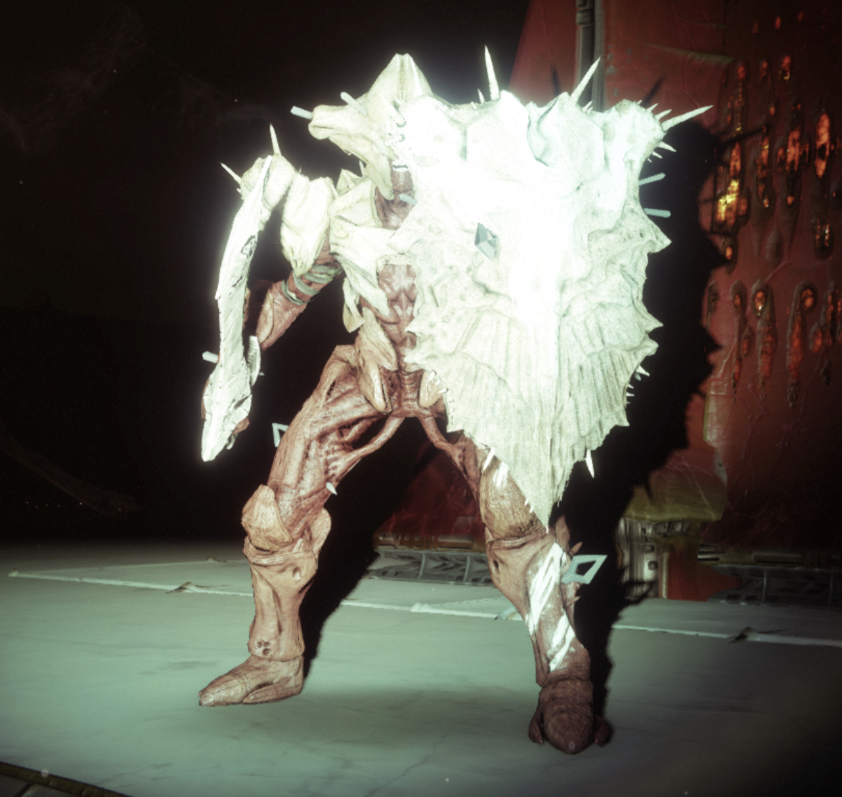 This image is a screenshot of a character or AI unit from the Destiny series of first-person shooter video games developed by Bungie Studios and published by Bungie or Activision. It falls under the screenshot category for a copyrighted computer game or video game, and the copyright for it is most likely held by the company that developed the game. It is believed that the use of a limited number of web-resolution screenshots: