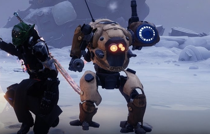 This image is a screenshot of a character or AI unit from the Destiny series of first-person shooter video games developed by Bungie Studios and published by Bungie or Activision. It falls under the screenshot category for a copyrighted computer game or video game, and the copyright for it is most likely held by the company that developed the game. It is believed that the use of a limited number of web-resolution screenshots: