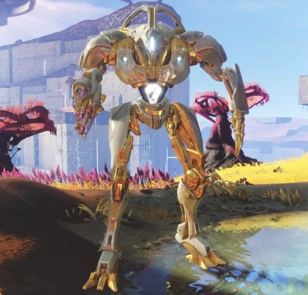 This image is a screenshot of a character or AI unit from the Destiny series of first-person shooter video games developed by Bungie Studios and published by Bungie or Activision. It falls under the screenshot category for a copyrighted computer game or video game, and the copyright for it is most likely held by the company that developed the game. It is believed that the use of a limited number of web-resolution screenshots: