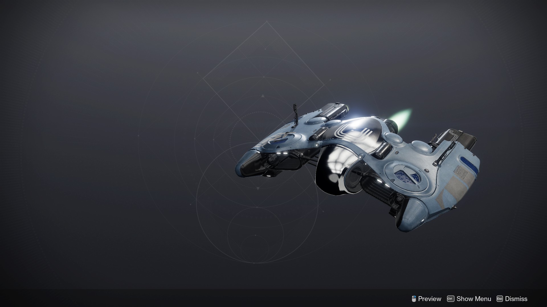 This image is a screenshot of a vehicle from the Destiny series of first-person shooter video games developed by Bungie Studios and published by Bungie or Activision. It falls under the screenshot category for a copyrighted computer game or video game, and the copyright for it is most likely held by the company that developed the game. It is believed that the use of a limited number of web-resolution screenshots: