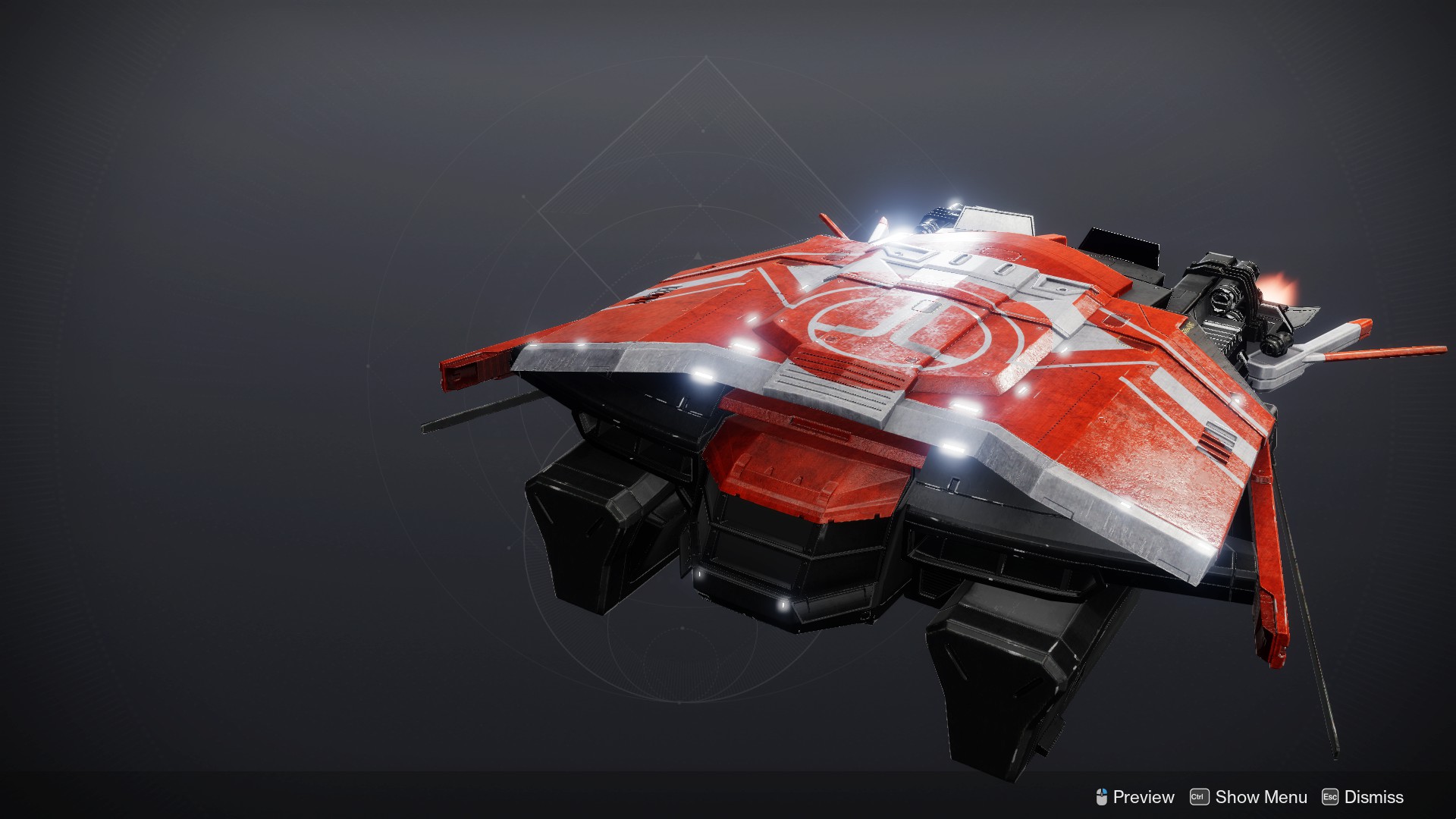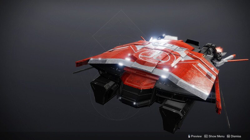This image is a screenshot of a vehicle from the Destiny series of first-person shooter video games developed by Bungie Studios and published by Bungie or Activision. It falls under the screenshot category for a copyrighted computer game or video game, and the copyright for it is most likely held by the company that developed the game. It is believed that the use of a limited number of web-resolution screenshots: