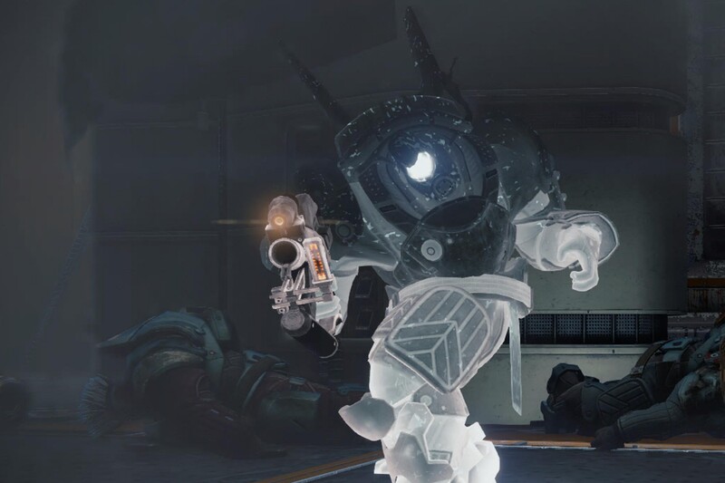 This image is a screenshot of a character or AI unit from the Destiny series of first-person shooter video games developed by Bungie Studios and published by Bungie or Activision. It falls under the screenshot category for a copyrighted computer game or video game, and the copyright for it is most likely held by the company that developed the game. It is believed that the use of a limited number of web-resolution screenshots:
