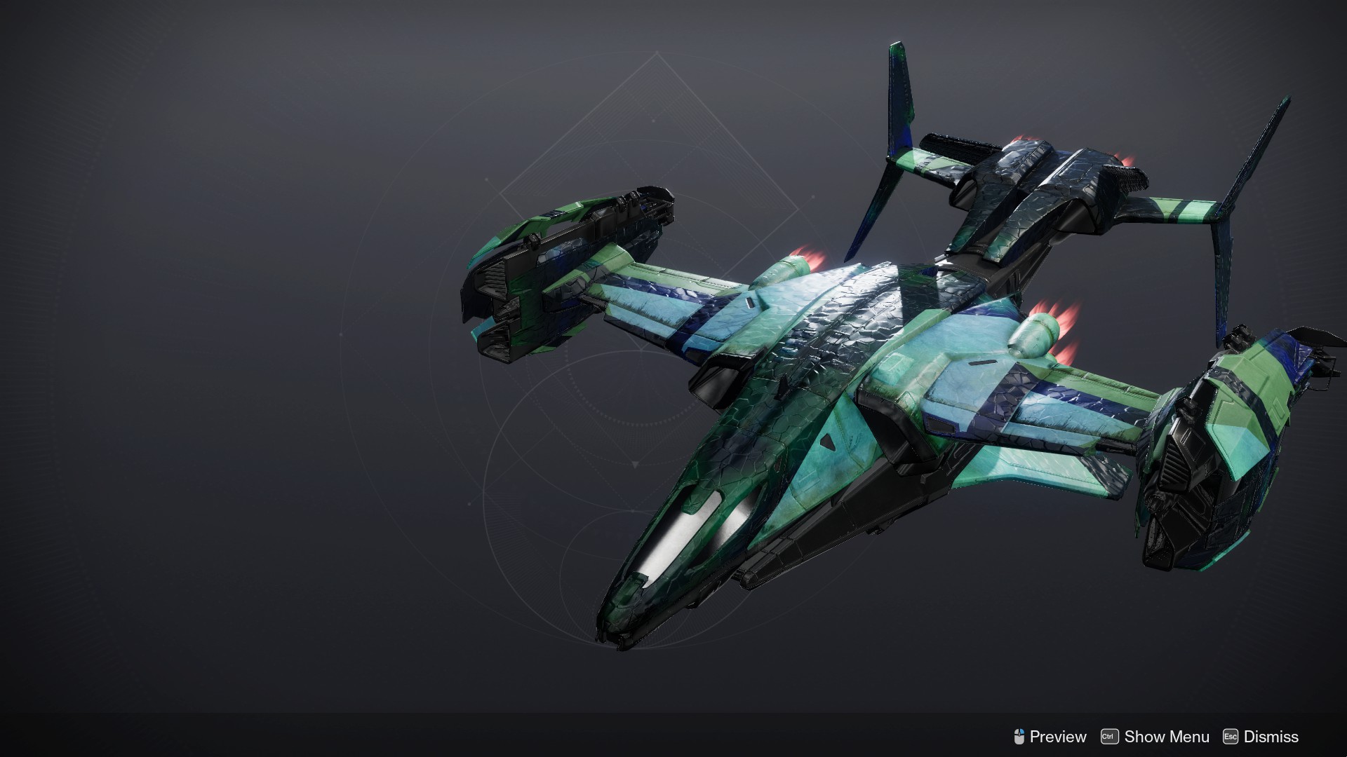 This image is a screenshot of a vehicle from the Destiny series of first-person shooter video games developed by Bungie Studios and published by Bungie or Activision. It falls under the screenshot category for a copyrighted computer game or video game, and the copyright for it is most likely held by the company that developed the game. It is believed that the use of a limited number of web-resolution screenshots: