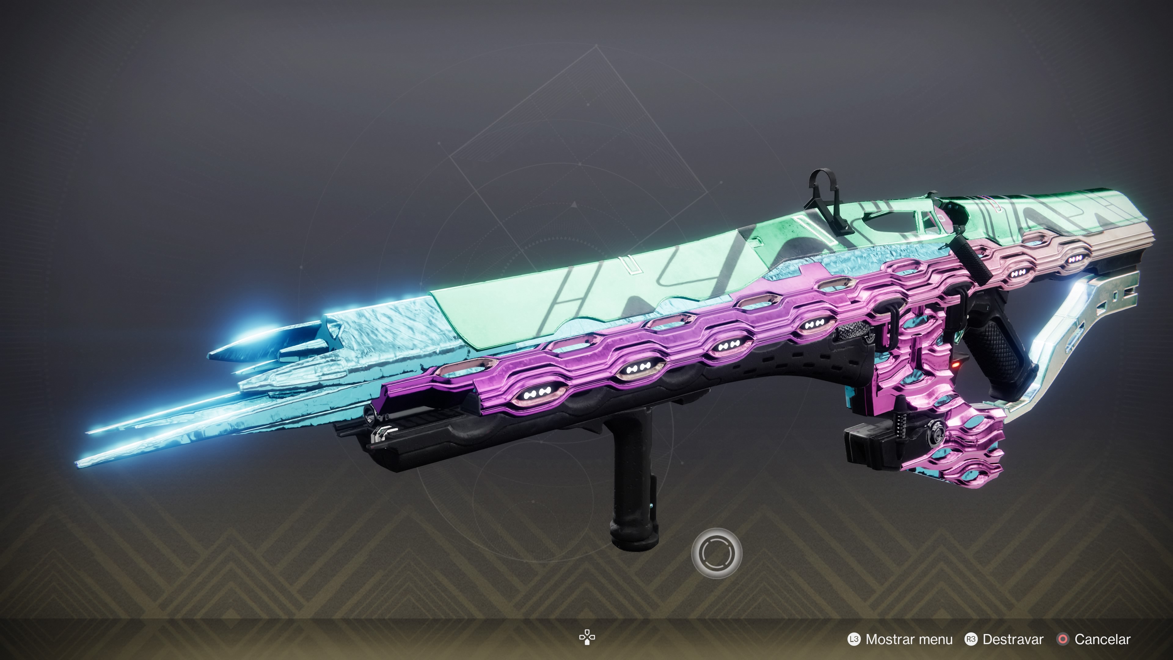 This image is a screenshot of a weapon from the Destiny series of first-person shooter video games developed by Bungie Studios and published by Bungie or Activision. It falls under the screenshot category for a copyrighted computer game or video game, and the copyright for it is most likely held by the company that developed the game. It is believed that the use of a limited number of web-resolution screenshots: