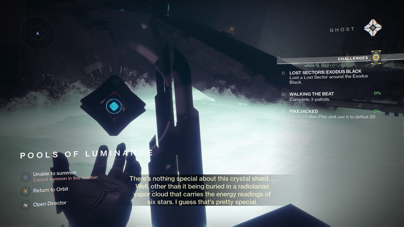 Ghost: "There's nothing special about this crystal shard. Well, other than it being buried in a radiolarian vapor cloud that carries the energy readings of six stars. I guess that's pretty special."