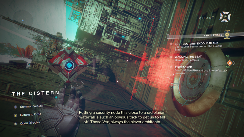 Ghost: "Putting a security node this close to a radiolarian waterfall is such an obvious trick to get us to fall off. Those Vex, always the clever architects."