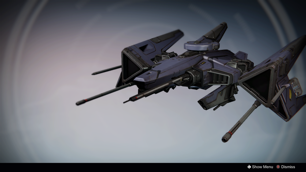 This image is a screenshot of a vehicle from the Destiny series of first-person shooter video games developed by Bungie Studios and published by Bungie or Activision. It falls under the screenshot category for a copyrighted computer game or video game, and the copyright for it is most likely held by the company that developed the game. It is believed that the use of a limited number of web-resolution screenshots: