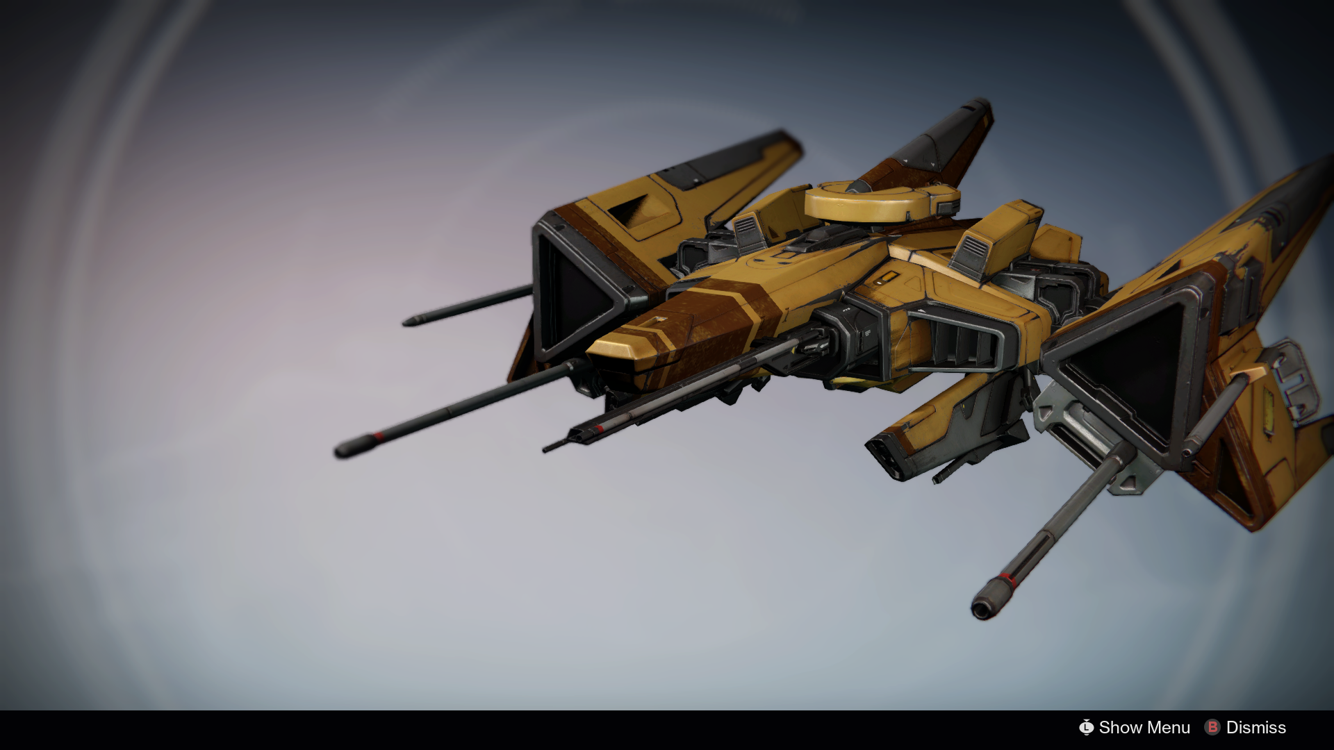 This image is a screenshot of a vehicle from the Destiny series of first-person shooter video games developed by Bungie Studios and published by Bungie or Activision. It falls under the screenshot category for a copyrighted computer game or video game, and the copyright for it is most likely held by the company that developed the game. It is believed that the use of a limited number of web-resolution screenshots: