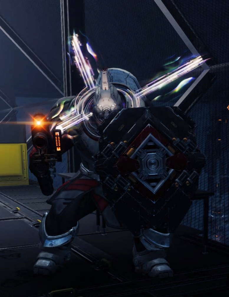 This image is a screenshot of a character or AI unit from the Destiny series of first-person shooter video games developed by Bungie Studios and published by Bungie or Activision. It falls under the screenshot category for a copyrighted computer game or video game, and the copyright for it is most likely held by the company that developed the game. It is believed that the use of a limited number of web-resolution screenshots: