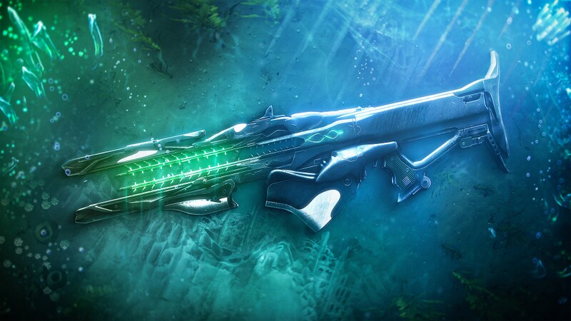 This image is a screenshot of a weapon from the Destiny series of first-person shooter video games developed by Bungie Studios and published by Bungie or Activision. It falls under the screenshot category for a copyrighted computer game or video game, and the copyright for it is most likely held by the company that developed the game. It is believed that the use of a limited number of web-resolution screenshots: