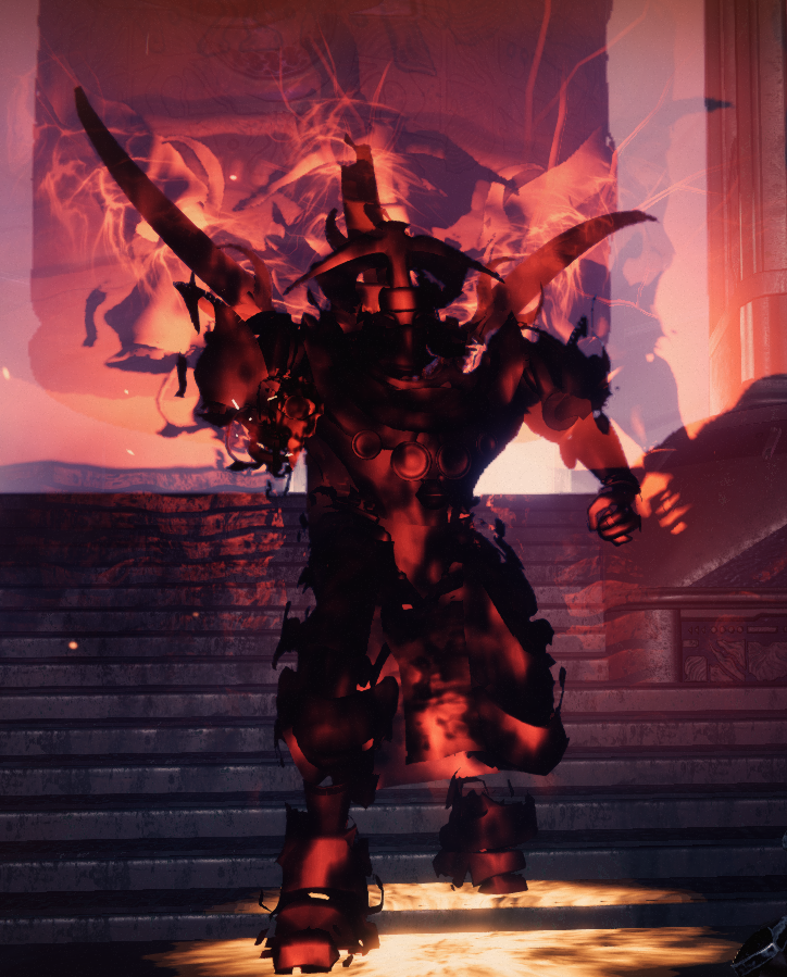 This image is a screenshot of a character or AI unit from the Destiny series of first-person shooter video games developed by Bungie Studios and published by Bungie or Activision. It falls under the screenshot category for a copyrighted computer game or video game, and the copyright for it is most likely held by the company that developed the game. It is believed that the use of a limited number of web-resolution screenshots: