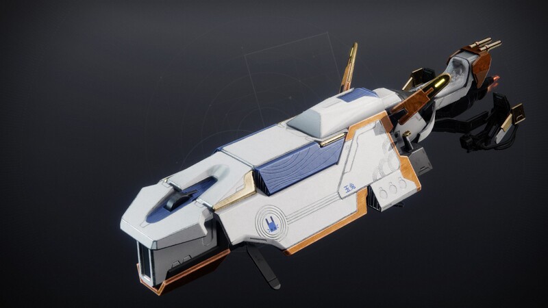 This image is a screenshot of a vehicle from the Destiny series of first-person shooter video games developed by Bungie Studios and published by Bungie or Activision. It falls under the screenshot category for a copyrighted computer game or video game, and the copyright for it is most likely held by the company that developed the game. It is believed that the use of a limited number of web-resolution screenshots: