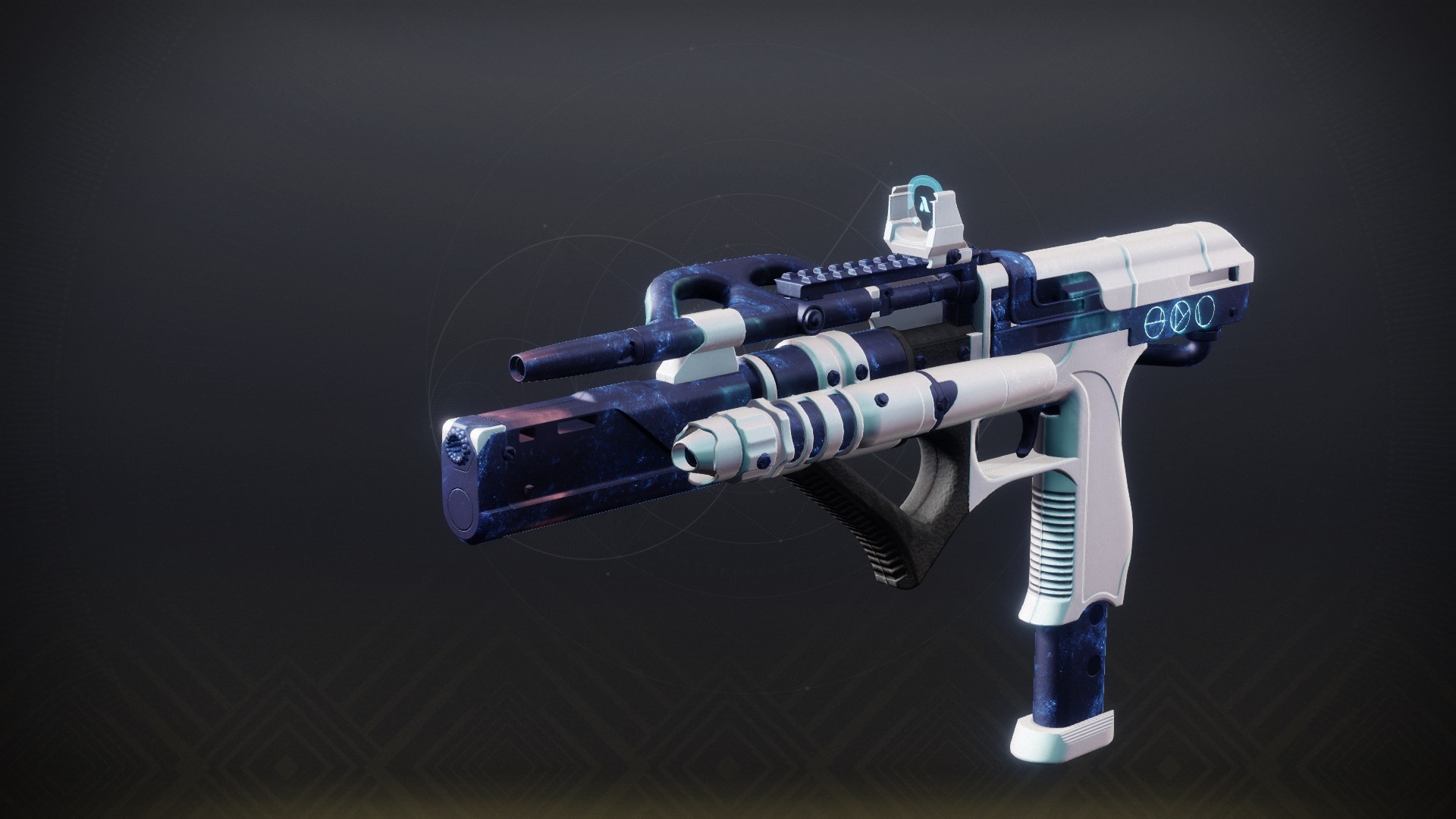 This image is a screenshot of a weapon from the Destiny series of first-person shooter video games developed by Bungie Studios and published by Bungie or Activision. It falls under the screenshot category for a copyrighted computer game or video game, and the copyright for it is most likely held by the company that developed the game. It is believed that the use of a limited number of web-resolution screenshots: