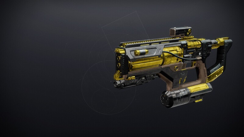 This image is a screenshot of a weapon from the Destiny series of first-person shooter video games developed by Bungie Studios and published by Bungie or Activision. It falls under the screenshot category for a copyrighted computer game or video game, and the copyright for it is most likely held by the company that developed the game. It is believed that the use of a limited number of web-resolution screenshots: