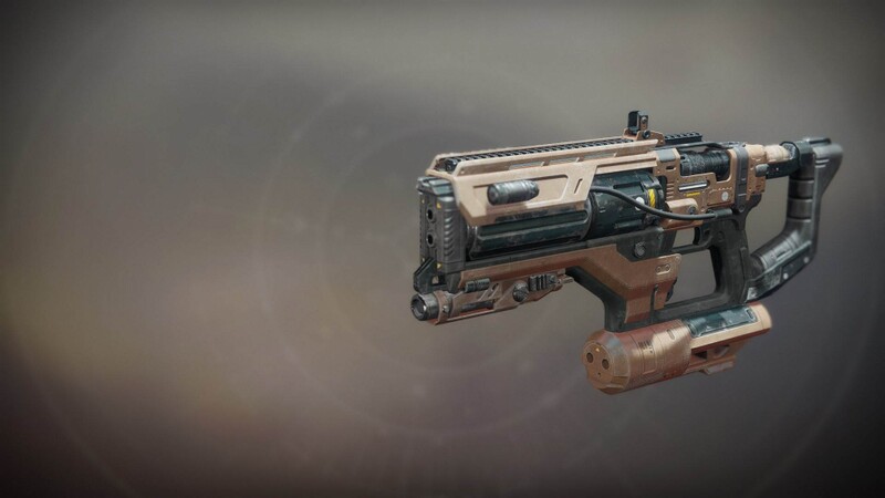 This image is a screenshot of a weapon from the Destiny series of first-person shooter video games developed by Bungie Studios and published by Bungie or Activision. It falls under the screenshot category for a copyrighted computer game or video game, and the copyright for it is most likely held by the company that developed the game. It is believed that the use of a limited number of web-resolution screenshots: