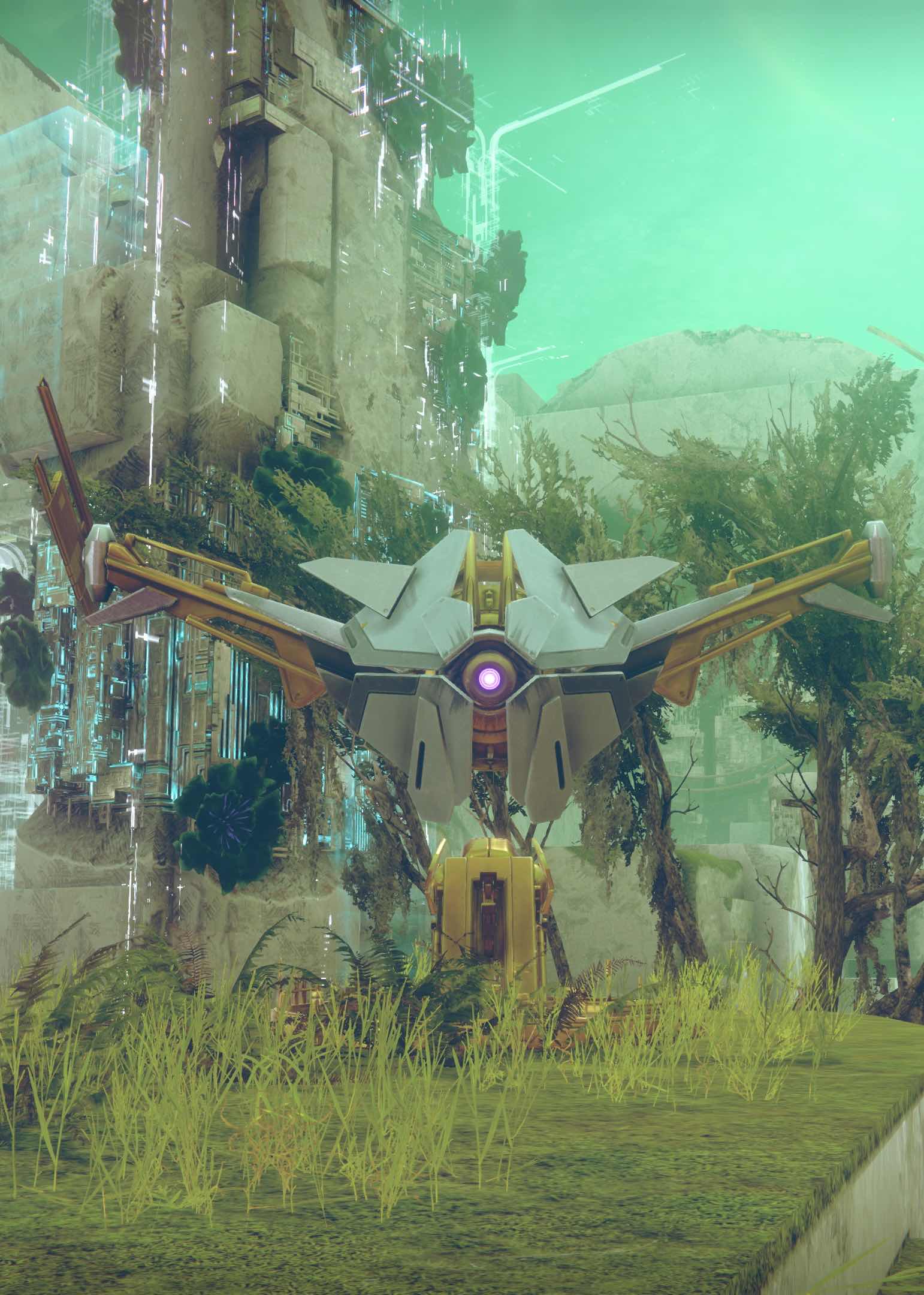 This image is a screenshot of a character or AI unit from the Destiny series of first-person shooter video games developed by Bungie Studios and published by Bungie or Activision. It falls under the screenshot category for a copyrighted computer game or video game, and the copyright for it is most likely held by the company that developed the game. It is believed that the use of a limited number of web-resolution screenshots: