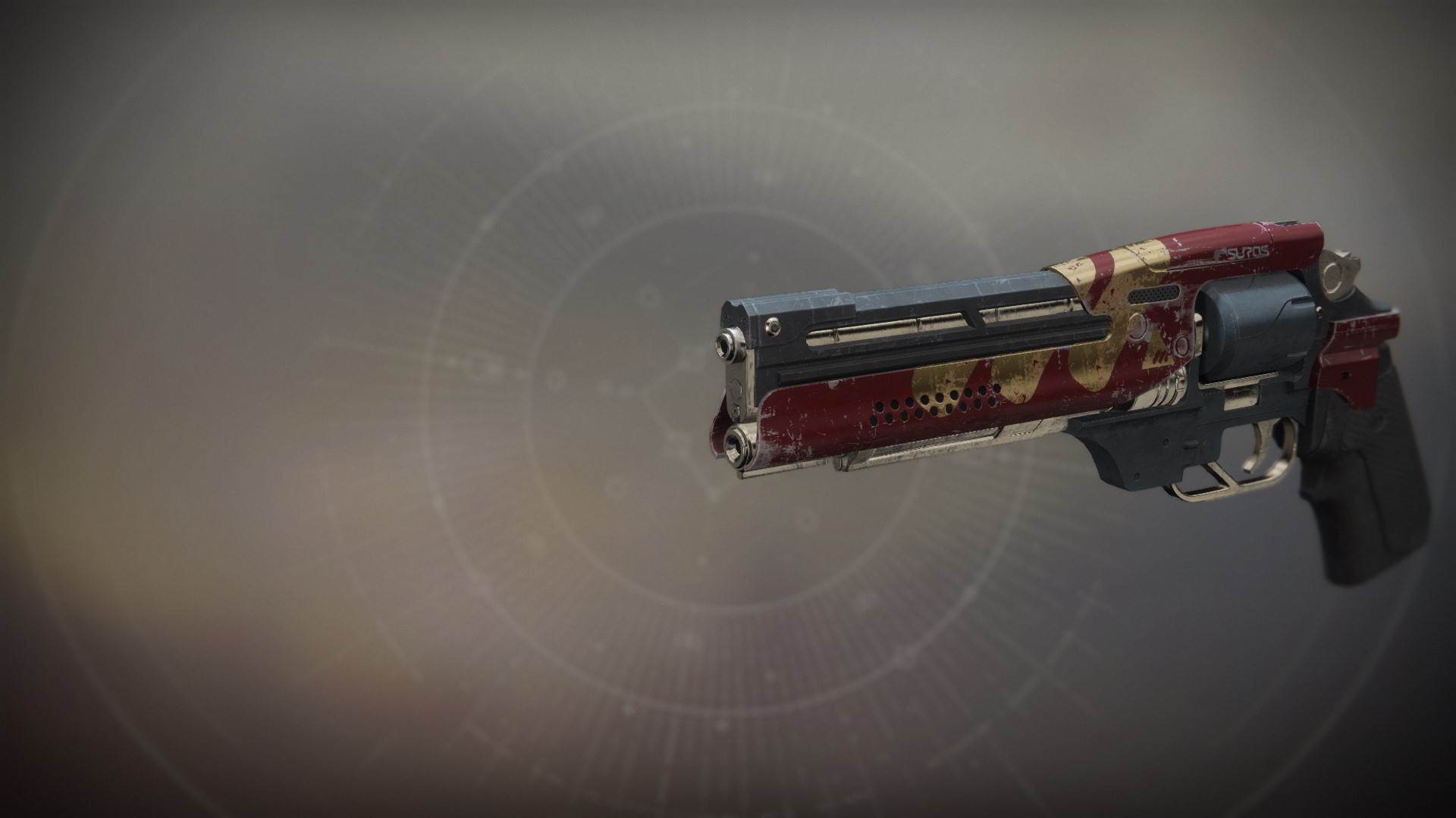 This image is a screenshot of a weapon from the Destiny series of first-person shooter video games developed by Bungie Studios and published by Bungie or Activision. It falls under the screenshot category for a copyrighted computer game or video game, and the copyright for it is most likely held by the company that developed the game. It is believed that the use of a limited number of web-resolution screenshots: