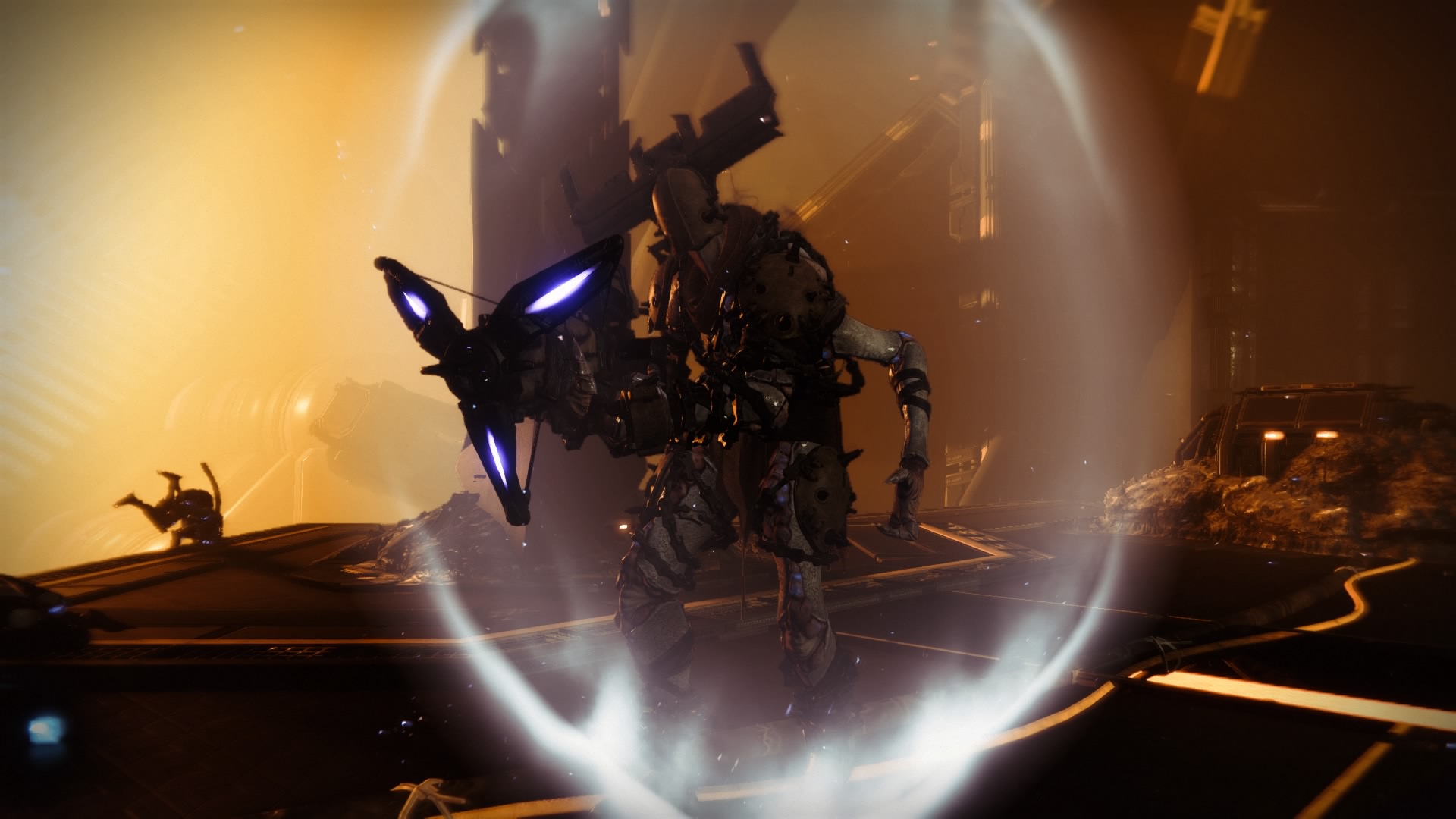 This image is a screenshot of a character or AI unit from the Destiny series of first-person shooter video games developed by Bungie Studios and published by Bungie or Activision. It falls under the screenshot category for a copyrighted computer game or video game, and the copyright for it is most likely held by the company that developed the game. It is believed that the use of a limited number of web-resolution screenshots: