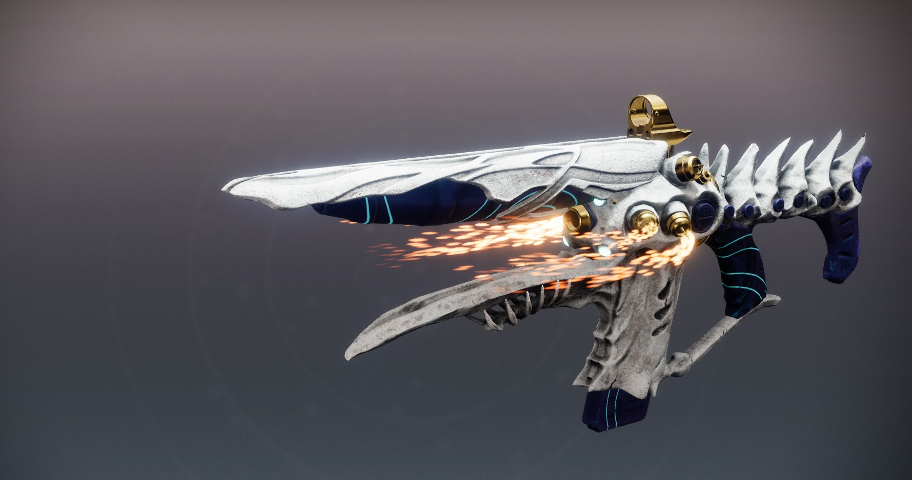 This image is a screenshot of a weapon from the Destiny series of first-person shooter video games developed by Bungie Studios and published by Bungie or Activision. It falls under the screenshot category for a copyrighted computer game or video game, and the copyright for it is most likely held by the company that developed the game. It is believed that the use of a limited number of web-resolution screenshots: