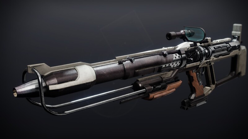 This image is a screenshot of a weapon from the Destiny series of first-person shooter video games developed by Bungie Studios and published by Bungie or Activision. It falls under the screenshot category for a copyrighted computer game or video game, and the copyright for it is most likely held by the company that developed the game. It is believed that the use of a limited number of web-resolution screenshots: