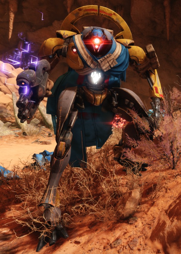 This image is a screenshot of a character or AI unit from the Destiny series of first-person shooter video games developed by Bungie Studios and published by Bungie or Activision. It falls under the screenshot category for a copyrighted computer game or video game, and the copyright for it is most likely held by the company that developed the game. It is believed that the use of a limited number of web-resolution screenshots: