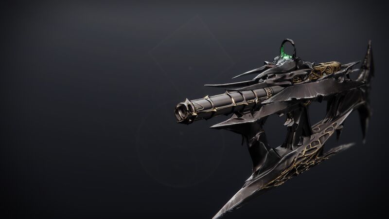 This image is a screenshot of a weapon from the Destiny series of first-person shooter video games developed by Bungie Studios and published by Bungie or Activision. It falls under the screenshot category for a copyrighted computer game or video game, and the copyright for it is most likely held by the company that developed the game. It is believed that the use of a limited number of web-resolution screenshots: