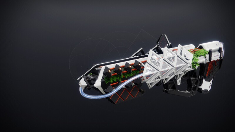 This image is a screenshot of a weapon from the Destiny series of first-person shooter video games developed by Bungie Studios and published by Bungie or Activision. It falls under the screenshot category for a copyrighted computer game or video game, and the copyright for it is most likely held by the company that developed the game. It is believed that the use of a limited number of web-resolution screenshots: