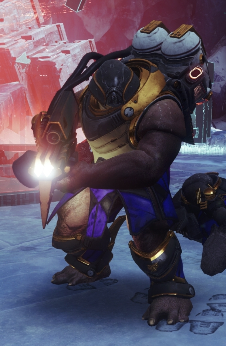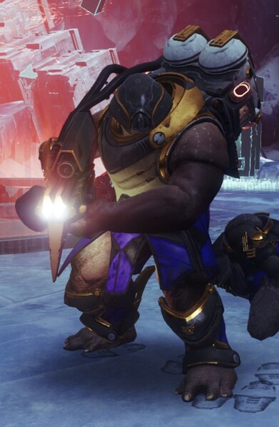 This image is a screenshot of a character or AI unit from the Destiny series of first-person shooter video games developed by Bungie Studios and published by Bungie or Activision. It falls under the screenshot category for a copyrighted computer game or video game, and the copyright for it is most likely held by the company that developed the game. It is believed that the use of a limited number of web-resolution screenshots: