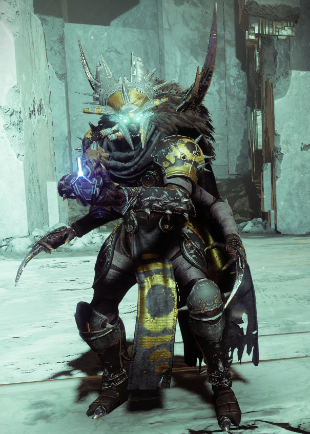 This image is a screenshot of a character or AI unit from the Destiny series of first-person shooter video games developed by Bungie Studios and published by Bungie or Activision. It falls under the screenshot category for a copyrighted computer game or video game, and the copyright for it is most likely held by the company that developed the game. It is believed that the use of a limited number of web-resolution screenshots:
