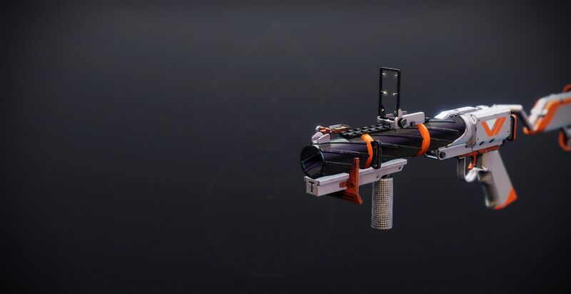 This image is a screenshot of a weapon from the Destiny series of first-person shooter video games developed by Bungie Studios and published by Bungie or Activision. It falls under the screenshot category for a copyrighted computer game or video game, and the copyright for it is most likely held by the company that developed the game. It is believed that the use of a limited number of web-resolution screenshots: