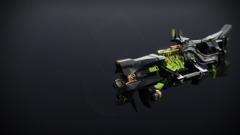 This image is a screenshot of a weapon from the Destiny series of first-person shooter video games developed by Bungie Studios and published by Bungie or Activision. It falls under the screenshot category for a copyrighted computer game or video game, and the copyright for it is most likely held by the company that developed the game. It is believed that the use of a limited number of web-resolution screenshots:
