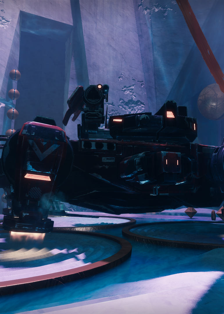 This image is a screenshot of a vehicle from the Destiny series of first-person shooter video games developed by Bungie Studios and published by Bungie or Activision. It falls under the screenshot category for a copyrighted computer game or video game, and the copyright for it is most likely held by the company that developed the game. It is believed that the use of a limited number of web-resolution screenshots: