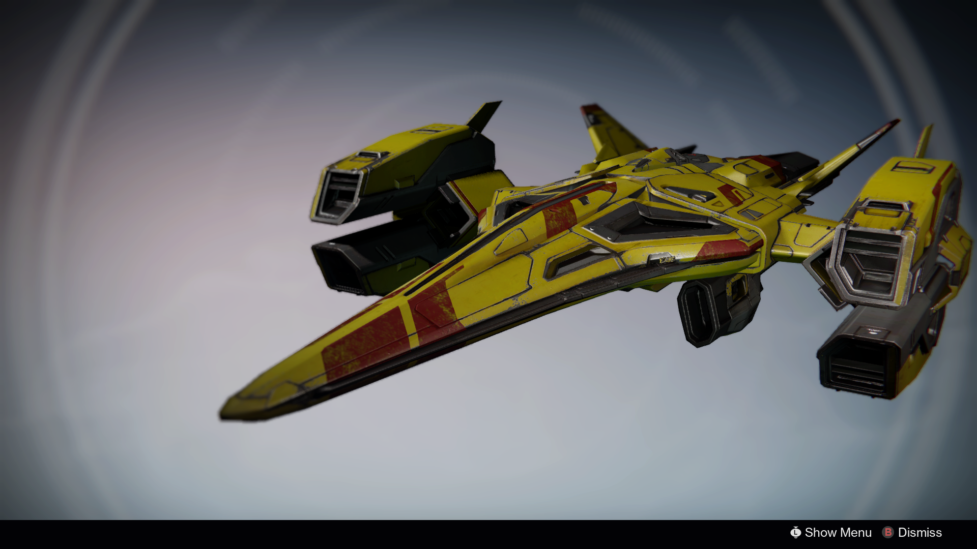 This image is a screenshot of a vehicle from the Destiny series of first-person shooter video games developed by Bungie Studios and published by Bungie or Activision. It falls under the screenshot category for a copyrighted computer game or video game, and the copyright for it is most likely held by the company that developed the game. It is believed that the use of a limited number of web-resolution screenshots: