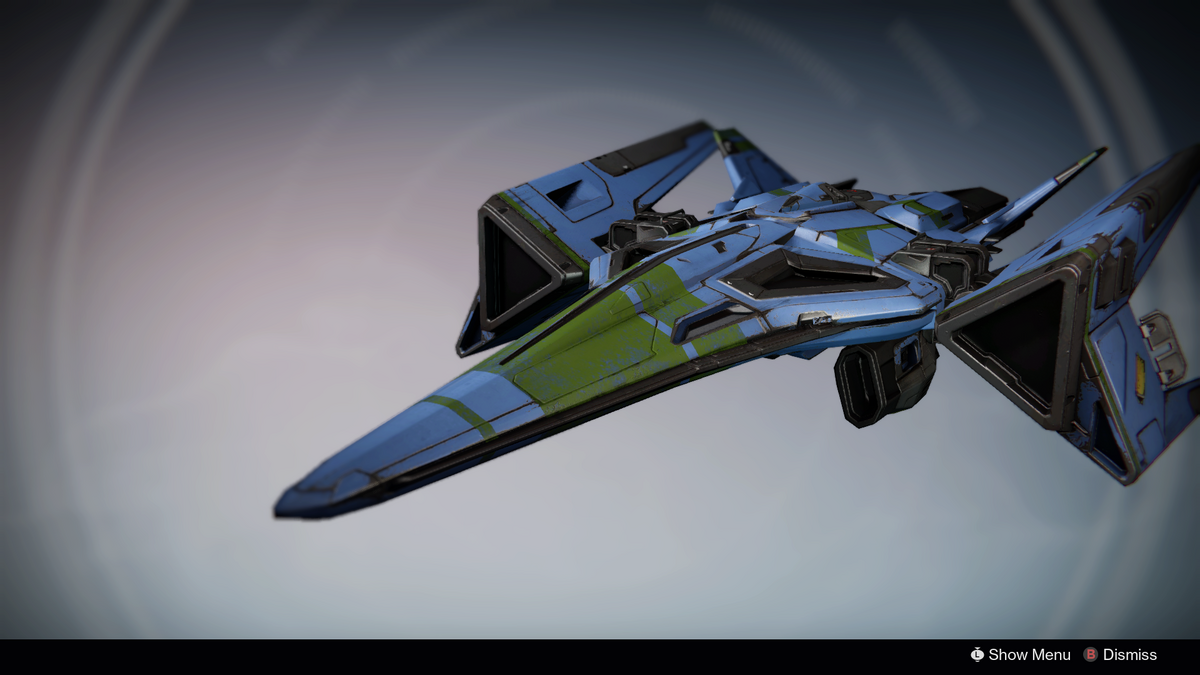 This image is a screenshot of a vehicle from the Destiny series of first-person shooter video games developed by Bungie Studios and published by Bungie or Activision. It falls under the screenshot category for a copyrighted computer game or video game, and the copyright for it is most likely held by the company that developed the game. It is believed that the use of a limited number of web-resolution screenshots:
