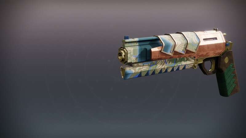 This image is a screenshot of a weapon from the Destiny series of first-person shooter video games developed by Bungie Studios and published by Bungie or Activision. It falls under the screenshot category for a copyrighted computer game or video game, and the copyright for it is most likely held by the company that developed the game. It is believed that the use of a limited number of web-resolution screenshots: