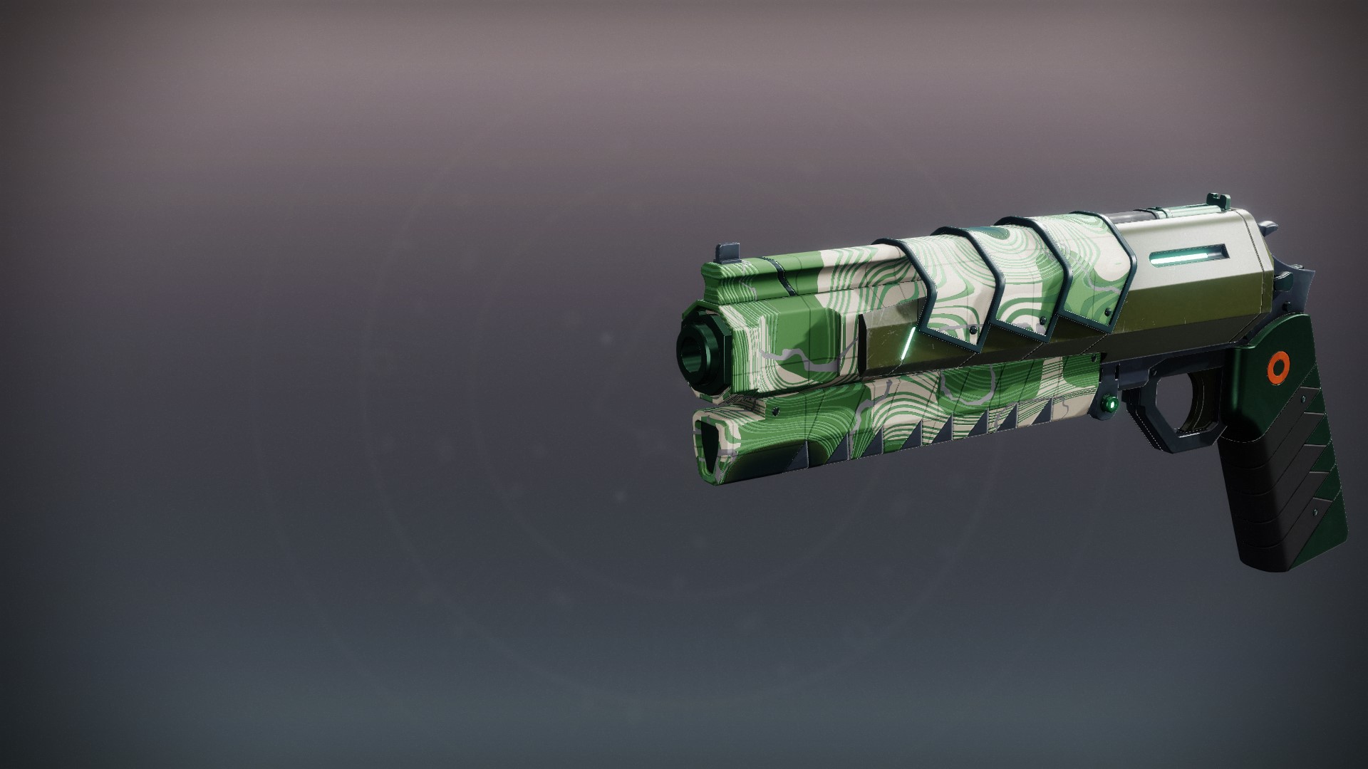 This image is a screenshot of a weapon from the Destiny series of first-person shooter video games developed by Bungie Studios and published by Bungie or Activision. It falls under the screenshot category for a copyrighted computer game or video game, and the copyright for it is most likely held by the company that developed the game. It is believed that the use of a limited number of web-resolution screenshots:
