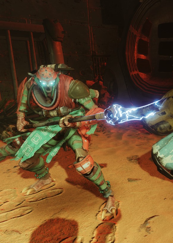 This image is a screenshot of a character or AI unit from the Destiny series of first-person shooter video games developed by Bungie Studios and published by Bungie or Activision. It falls under the screenshot category for a copyrighted computer game or video game, and the copyright for it is most likely held by the company that developed the game. It is believed that the use of a limited number of web-resolution screenshots: