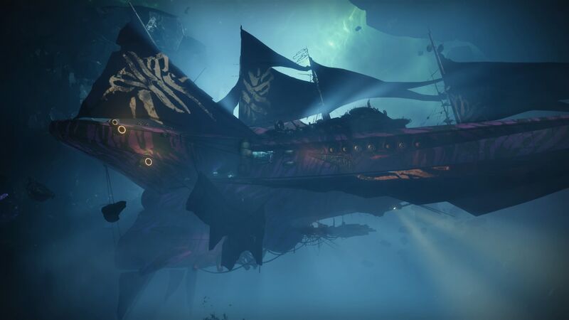 This image is a screenshot of a vehicle from the Destiny series of first-person shooter video games developed by Bungie Studios and published by Bungie or Activision. It falls under the screenshot category for a copyrighted computer game or video game, and the copyright for it is most likely held by the company that developed the game. It is believed that the use of a limited number of web-resolution screenshots: